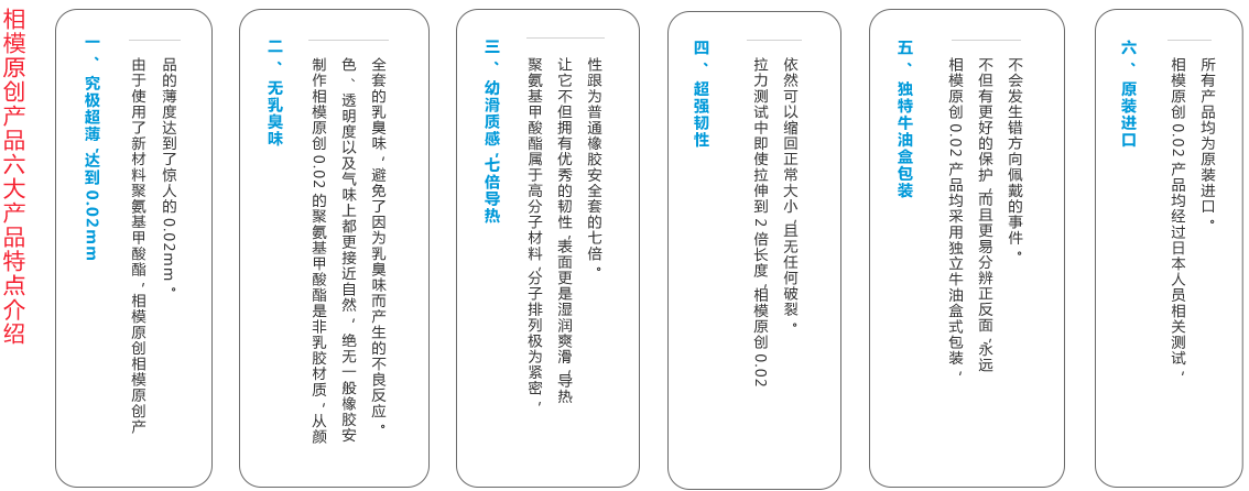 1998年日本相模公司突破性地發(fā)明以“聚氨基甲酸酯”為原料生產(chǎn)的相模原創(chuàng)0.02安全套,沒有乳膠及任何臭味,比普通橡膠安全套有著更佳的體熱傳導(dǎo)性,使用時(shí)體溫可于瞬間傳至伴侶體內(nèi),減輕不適及不自然感,并創(chuàng)下迄今為止零過敏的記錄。